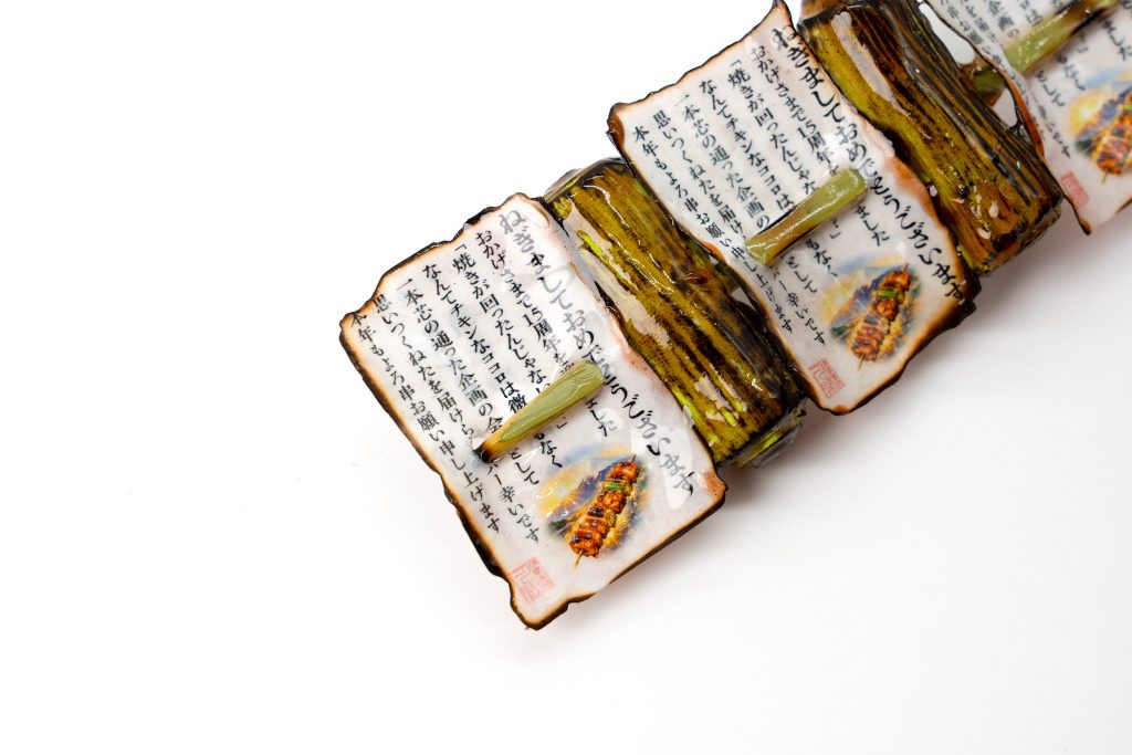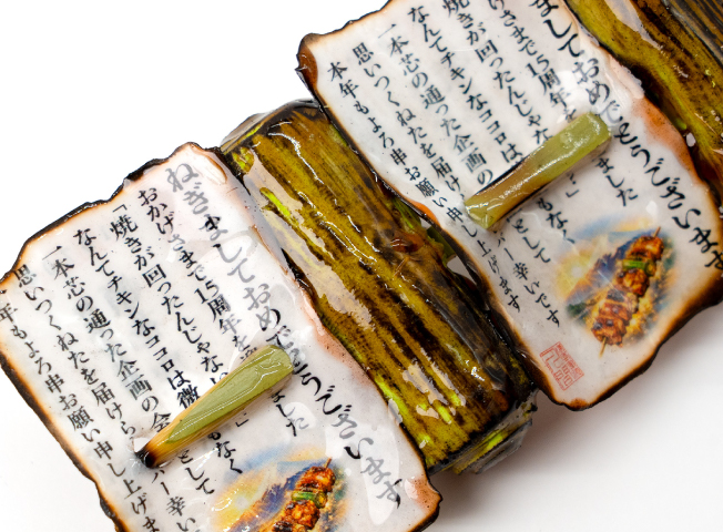 ねぎま状作りは、焼印を北海道から取り寄せることから始まり、”ハガキの炙り方”を極め、”リアルなねぎの筋”を入れるという、人生で二度と役に立たない、でも確実に大事なスキルをたくさん習得しました。